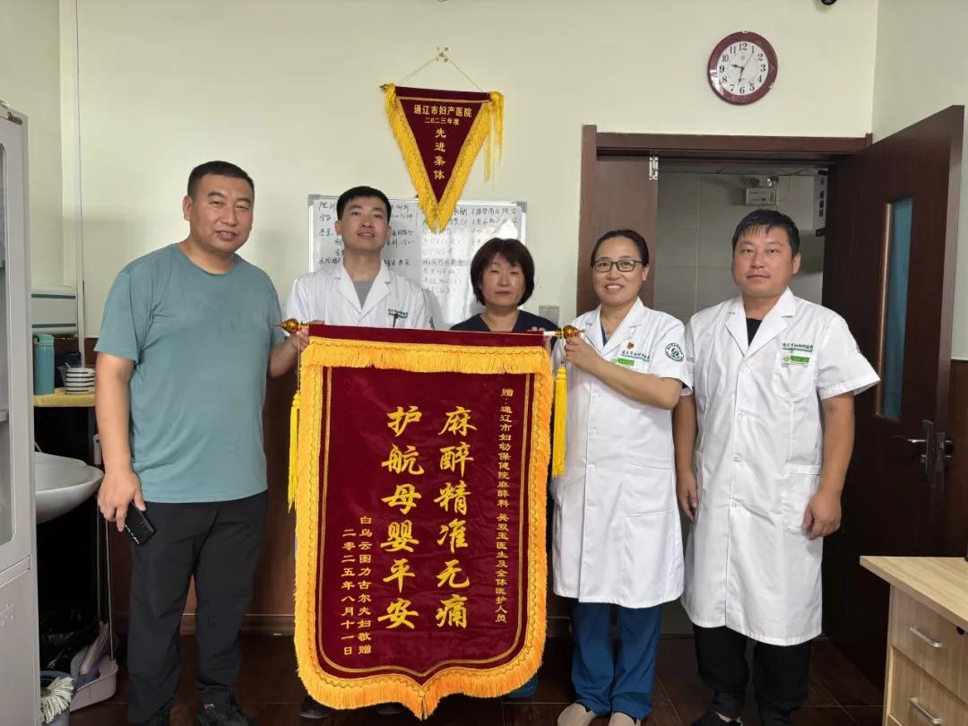 近日,通辽市妇幼保健院麻醉科收到了一面绣有“麻醉精准无痛 护航母婴平安”的锦旗,一位曾经的住院患者与家属以此表达对麻醉科团队在手术期间专业且贴心照护的诚挚谢意。