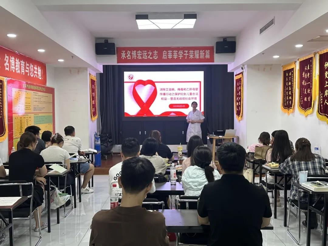 为进一步提升消除“艾梅乙”(艾滋病、梅毒、乙肝)母婴传播风险,营造无歧视的社会环境,8月4日,通辽市妇幼保健院宣讲团走进名博教育学校,为青年学员们开展了一场以消除“艾梅乙”母婴传播行动之保障妇女儿童合法权益---营造无歧视社会环境,为题的健康宣讲活动。