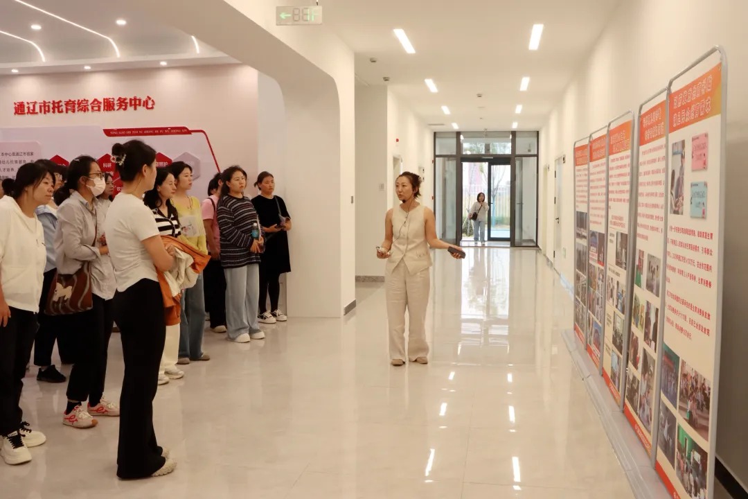 9 月 11 日下午,通辽市托育服务骨干培训全体学员齐聚通辽市托育综合服务中心,开展了一场以 “交流促提升、实践强能力” 为主题的参观学习活动。通过实地走访、深度交流,骨干教师们围绕托育机构建设、环境创设等核心议题,与园所负责人展开细致探讨,让这场互动既充实又富有成效。