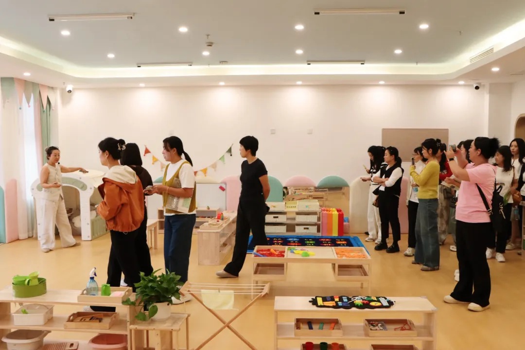 在董会园长的带领下,学员们沉浸式参观了两栋大楼。从班级空间布局、玩教具配置,到整体功能设施与环境创设,董园长边走边讲解,分享了诸多实践细节并耐心解答疑问。现场交流氛围热烈,大家在思维碰撞中收获颇丰。